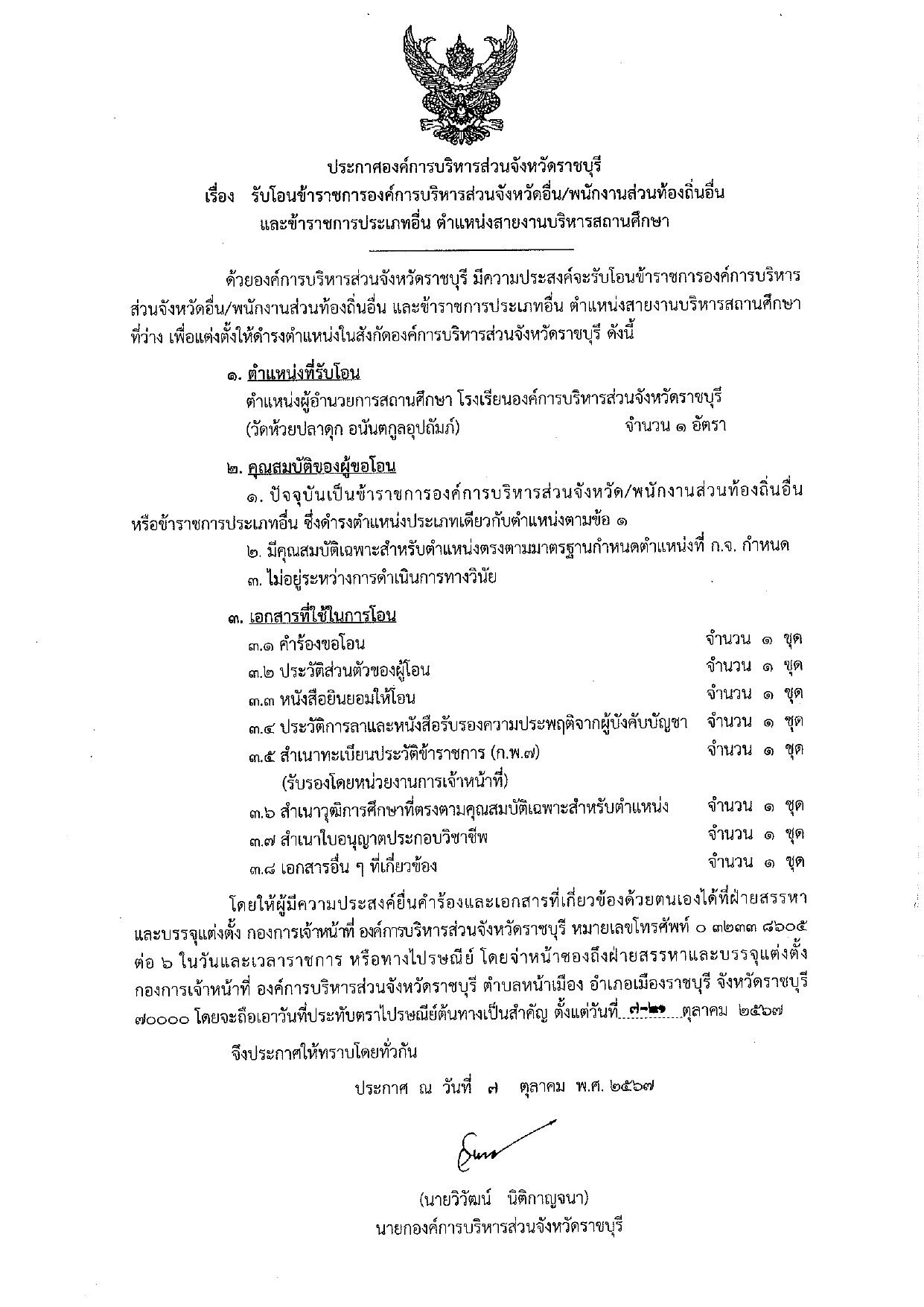 ประกาศองค์การบริหารส่วนจังหวัดราชบุรี