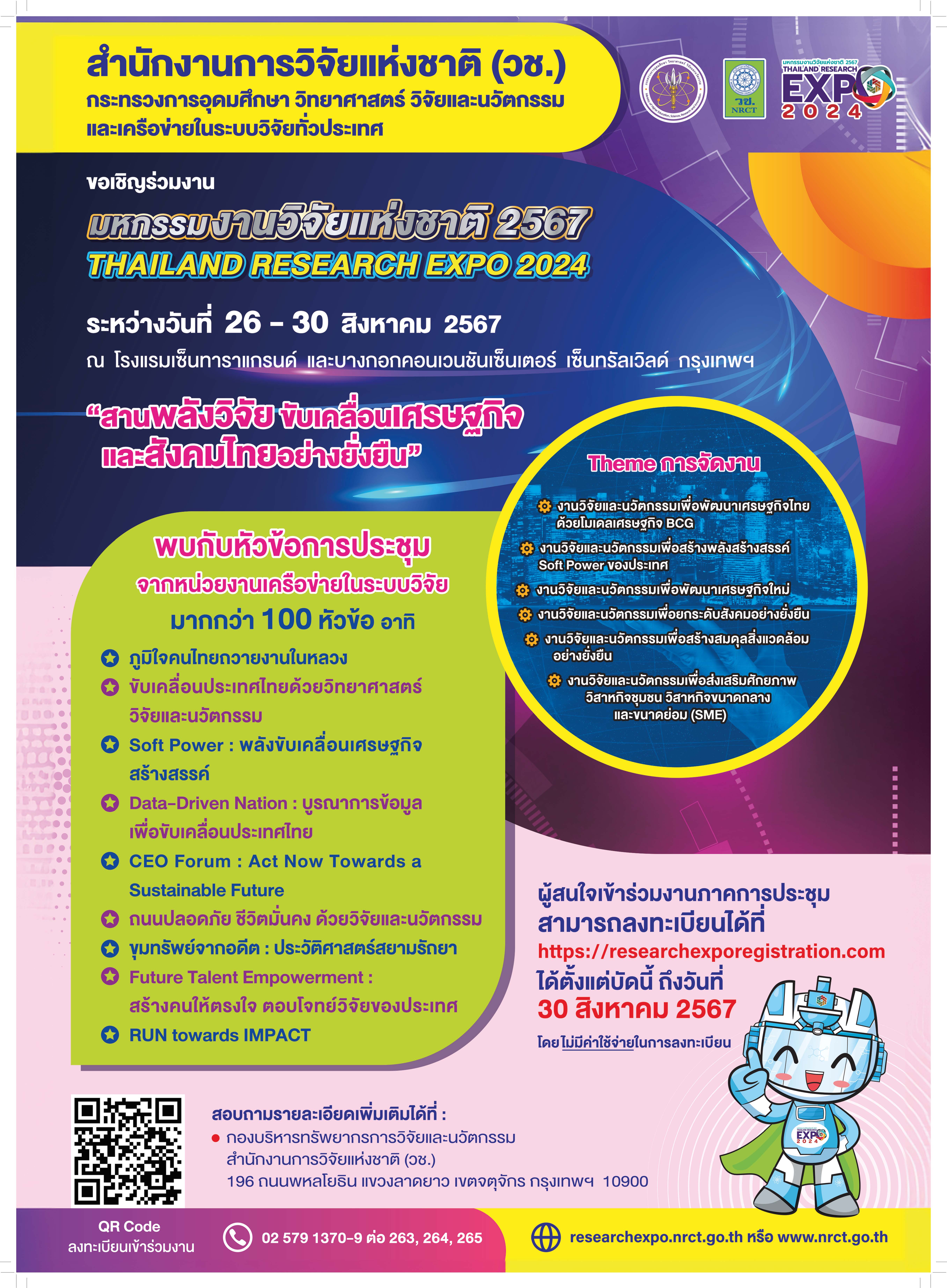 เชิญร่วมงาน “มหกรรมงานวิจัยแห่งชาติ 2567 (Thailand Research Expo 2024)” ...