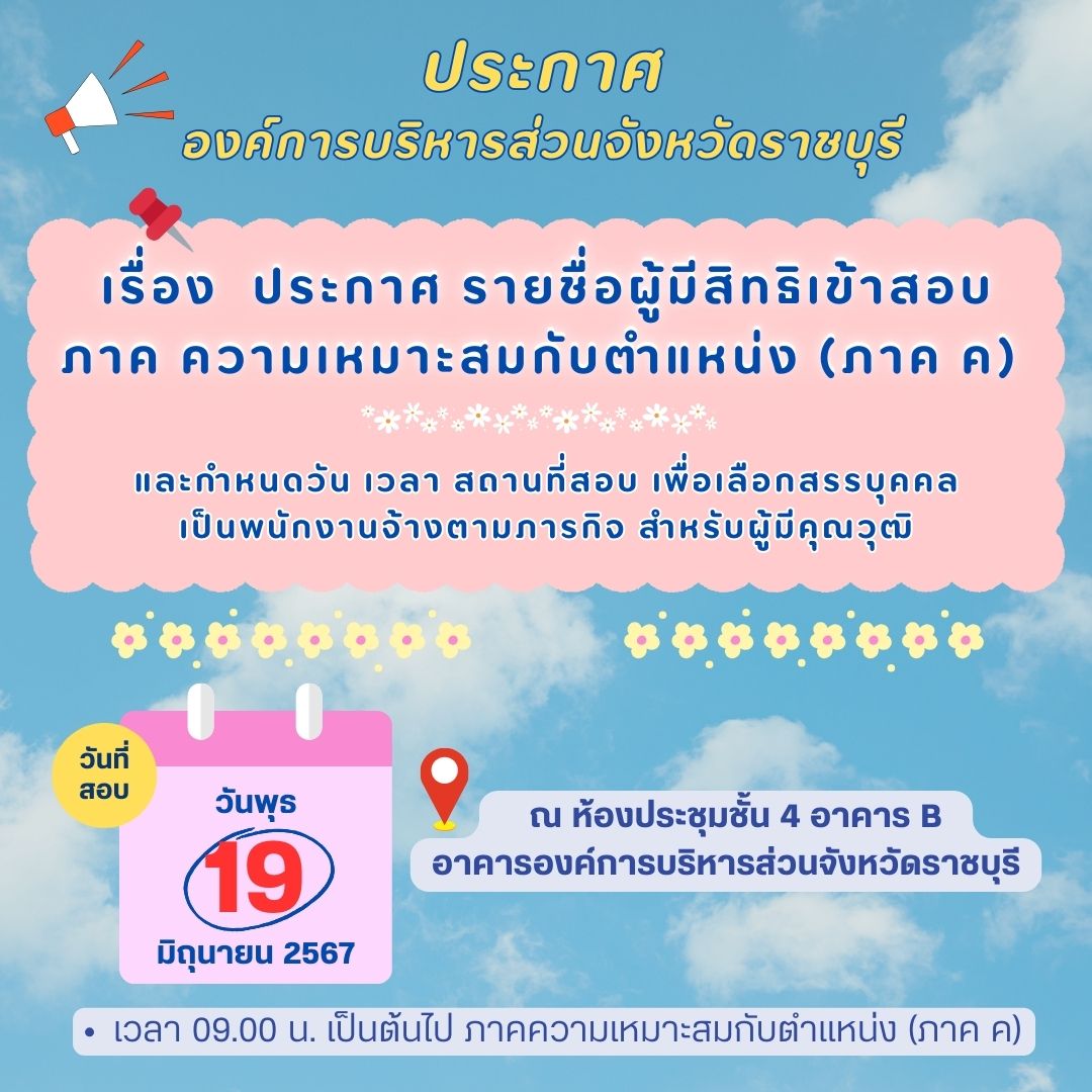ประกาศรายชื่อผู้มีสิทธิเข้าสอบภาค ความเหมาะสมกับตำแหน่ง (ภาค ค) และกำหนดวัน เวลา ...