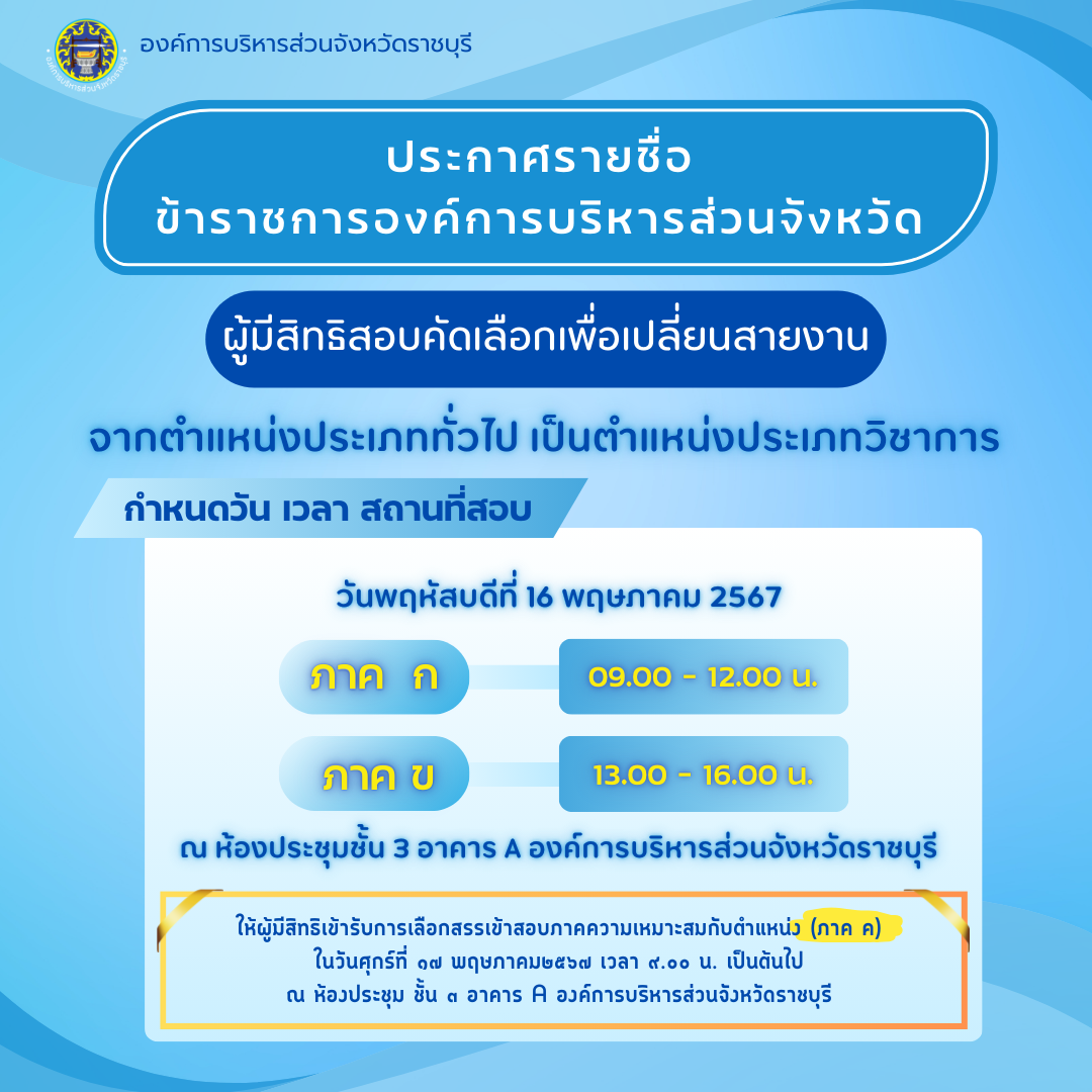 ประกาศรายชื่อข้าราชการองค์การบริหารส่วนจังหวัดผู้มีสิทธิสอบคัดเลือกเพื่อเปลี่ยนส ...