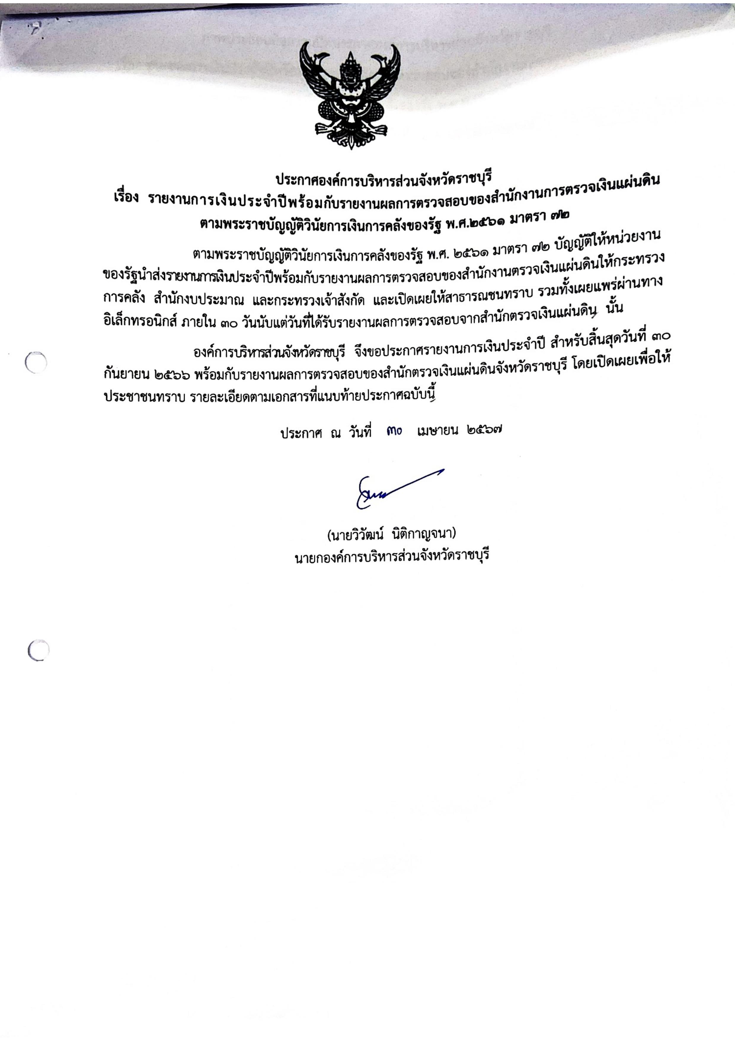 รายงานประจําปีตามที่กระทรวงการคลังกําหนด