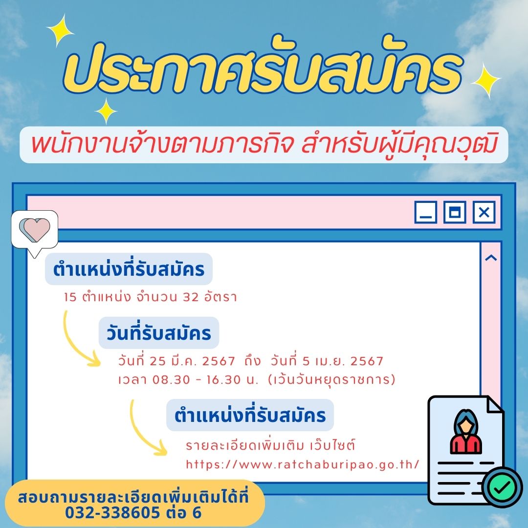 ประกาศรับสมัครบุคคลเพื่อเลือกสรรเป็นพนักงานจ้างตามภารกิจ สำหรับผู้มีคุณวุฒิ ...