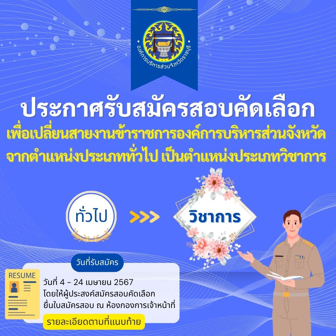 ประกาศรับสมัครสอบคัดเลือกเพื่อเปลี่ยนสายงานข้าราชการองค์การบริหารส่วนจังหวัด จาก ...