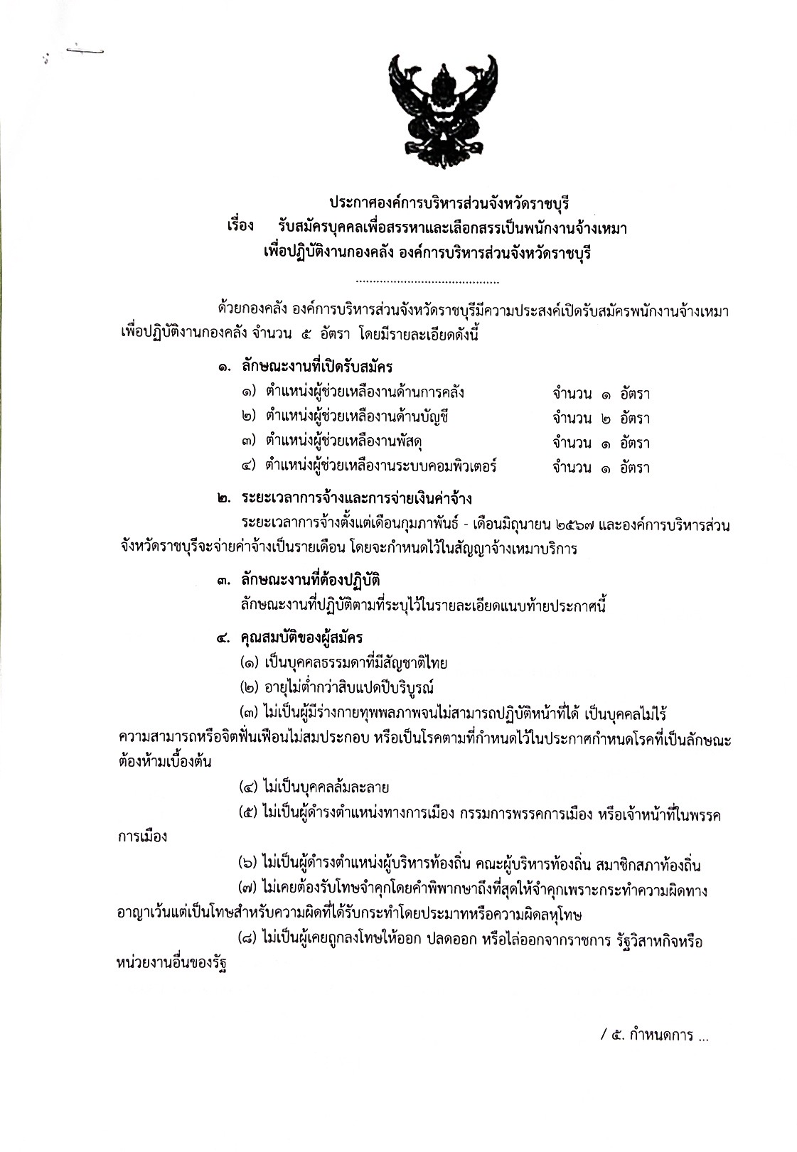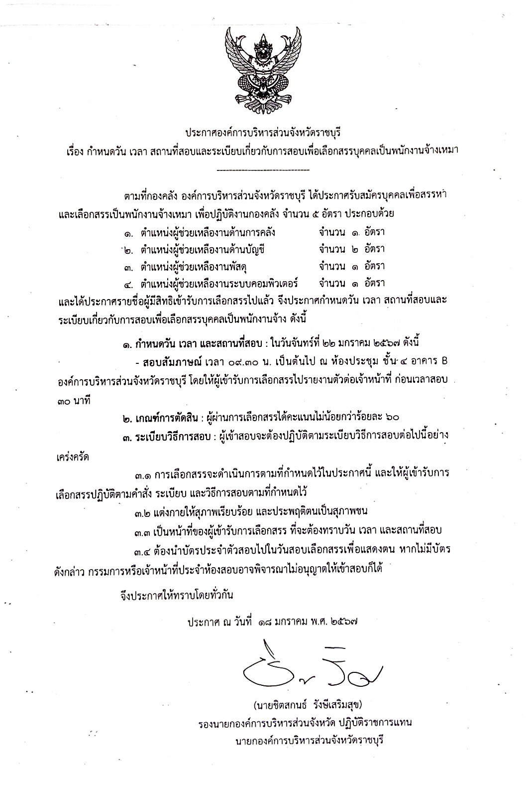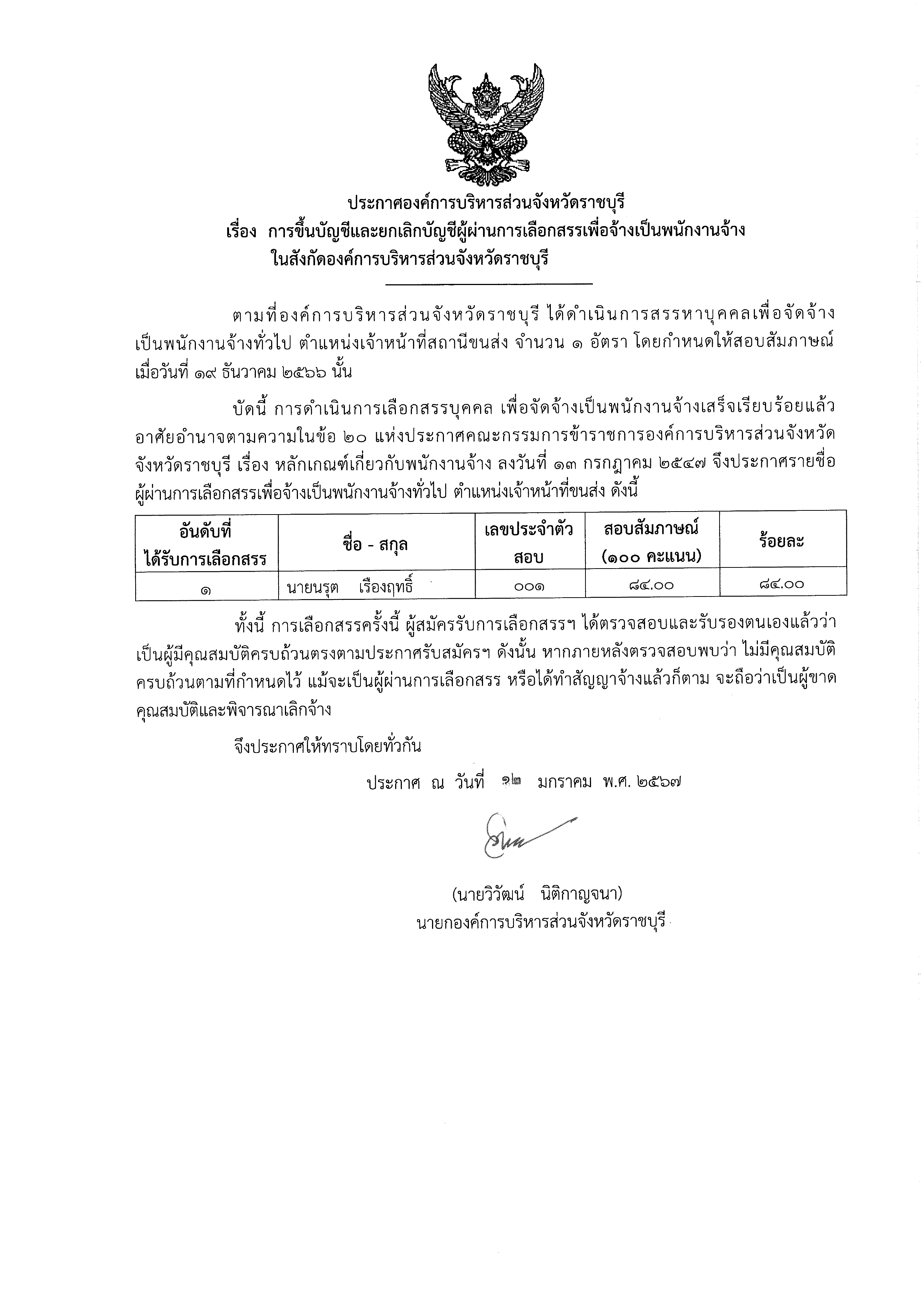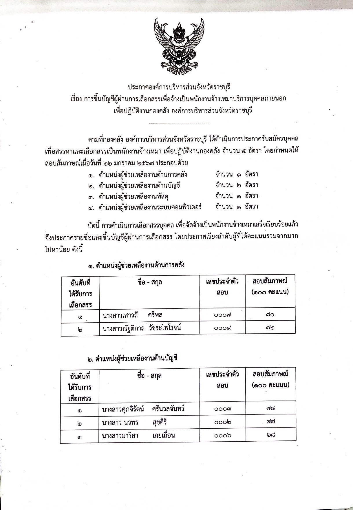 ประกาศ อบจ.ราชบุรี เรื่อง ผู้ผ่านการเลือกสรรเพื่อจ้าง เป็นพนักงานจ้างในสังกัด อบ ...