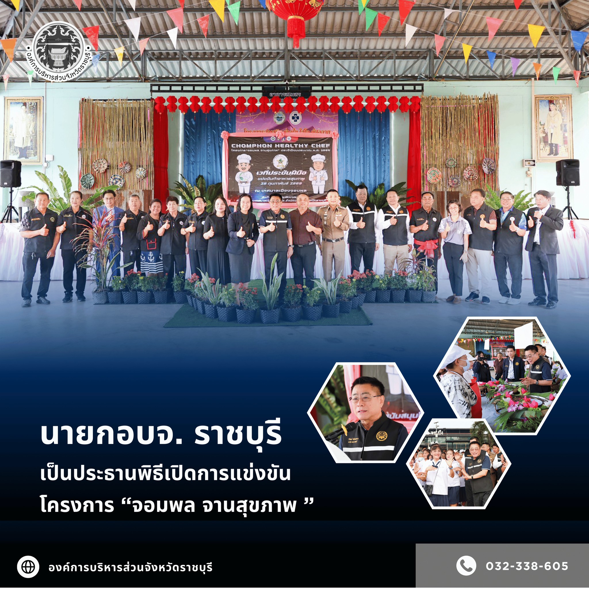 วันที่ 25 กุมภาพันธ์ 2569 เวลา 09.00 น. ณ อาคารสโมสร เทศบาลเมืองจอมพล อำเภอจอมบึง จังหวัตราชบุรี นายวิวัฒน์ นิติกาญจนา นายกองค์การบริหารส่วนจังหวัดราชบุรี เป็นประธานพิธีเปิดโครงการจอมพล จานสุขภาพ พร้อมด้วย นายมนตรี ใช่รุ่งเรือง นายทินธนัท ธีรธนัทภูมิ เลขานุการนายกอบจ.ราชบุรี นายธนวรรธน์ สีลาเนียม และนายชำนาญ บุญณรงค์ สใาชิกสภา อบจ.ราชบุรี เขตอ.จอมบึง โดยมีนายชาญชัย ใช่รุ่งเรือง นายกเทศมนตรีเมืองจอมพล คณะผู้บริหาร สมาชิกสภาเทศบาลเมืองจอมพล ผู้ประกอบการร้านอาหาร ในพื้นที่เทศบาลเมืองจอมพล ร่วมกิจกรรมโครงการนี้ไม่ได้เป็นเพียงการพัฒนาเมนูอาหารใหม่ๆ เท่านั้น แต่คือการเชิดชู ภูมิปัญญาและวัตถุดิบท้องถิ่นของเมืองจอมพล ให้กลายเป็นจุดเด่นที่สร้างรายได้ และสร้างชื่อเสียงให้เมืองจอมพลกลายเป็นสัญสัญลักษณ์แห่งความอร่อยที่มาพร้อมกับคุณภาพชีวิตที่ดี เป็นที่ประทับใจแก่ผู้มาเยือน และสร้างความภาคภูมีใจให้แก่คนในท้องถิ่นอย่างยั่งยืนโดยมีการคัดเลือกในรอบแรก จากการนำเสนอแนวคิดในรูปแบบคลิปวิดิโอ หลักเกณฑ์การประเมินด้านความคิดสร้างสรรค์และโภชนาการ ซึ่งมีผู้ประกอบการที่ผ่านเข้ารอบสุดท้ายมาประชันฝีมือรอบชิงชนะเลิศต่อคณะกรรมการผู้ทรงคุณวุฒิ ทั้งด้านวิชาการ และผู้เชี่ยวชาญด้านอาหาร เพื่อเฟ้นหาเมนูที่เป็นเอกลักษณ์ใหม่ของเมืองจอมพลนายกวิวัฒน์ กล่าวว่า โครงการดังกล่าวถือเเป็นโครงการที่ดี สามารถเป็นอำเภอนำร่องของจังหวัดราชบุรี ในการจัดโครงการเนรมิตเมือง ที่ทางอบจ.ราชบุรี ได้ทำพิธีลงนามบันทึกข้อตกลงความร่วมมือ (MOU) โครงการ “เนรมิตเมือง” สร้างแบรนด์เมืองสู่สินทรัพย์สร้างสรรค์ กับทางผู้ว่าการการท่องเที่ยวแห่งประเทศไทย พร้อมทั้งจังหวัดนำร่อง ทั้ง 9 จังหวัด โดยให้กำหนดกลยุทธ์การสร้างแบรนด์เมืองที่ชัดเจน การออกแบบและทดลองใช้แบรนด์เมืองผ่านกิจกรรมในพื้นที่จริง และการพัฒนาอัตลักษณ์แบรนด์เมืองเพื่อประยุกต์ใช้ในมิติต่าง ๆ เช่น สินค้า บริการ และสภาพแวดล้อมเมืองจอมพลสู่การพัฒนาที่ยั่งยืนต่อไป