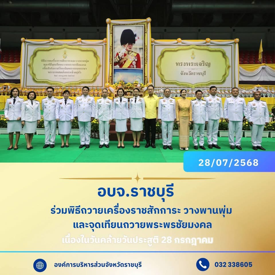 อบจ.ราชบุรี ร่วมพิธีถวายเครื่องราชสักการะ วางพานพุ่ม และจุดเทียนถวายพระพรชัยมงคล ...