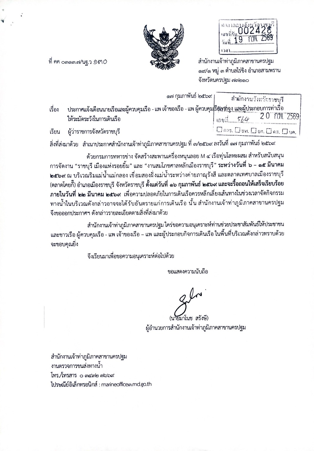 (ตลาดโคยกี๊) อำเภอเมืองราชบุรี จังหวัดราชบุรี ตั้งแต่วันที่ ๑๖ กุมภาพันธ์ ๒๕๕๖๙ และจะรื้อถอนให้เสร็จเรียบร้อยภายในวันที่ ๒๒ มีนาคม ๒๕๖๙