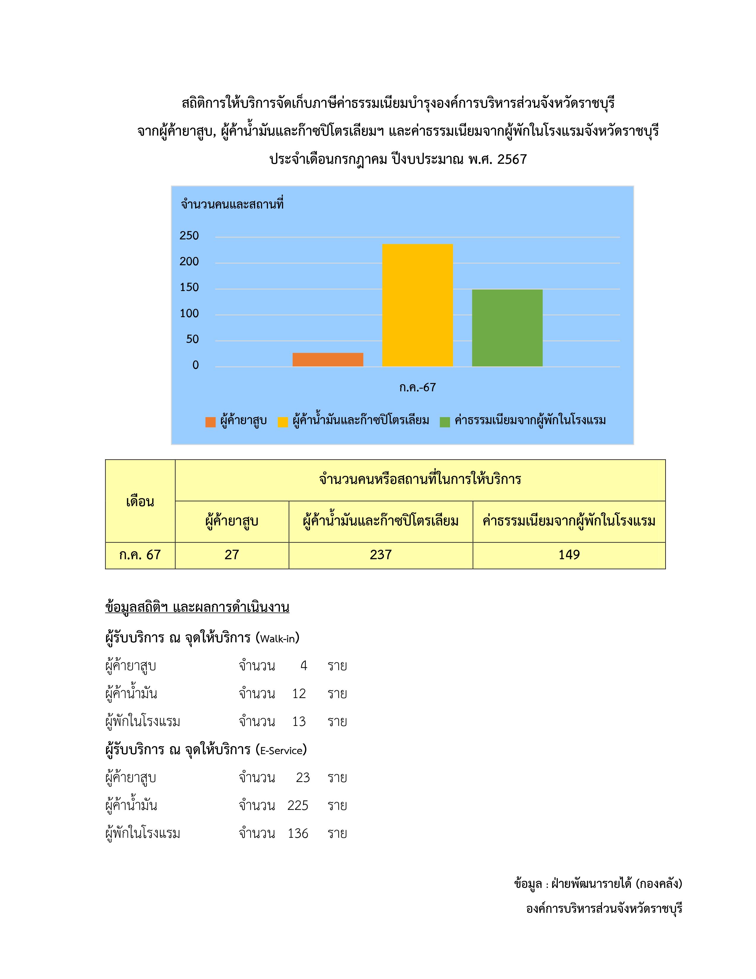 สถิติการให้บริการจัดเก็บภาษีค่าธรรมเนียมบำรุงองค์การบริหารส่วนจังหวัดราชบุรีจากผ ...