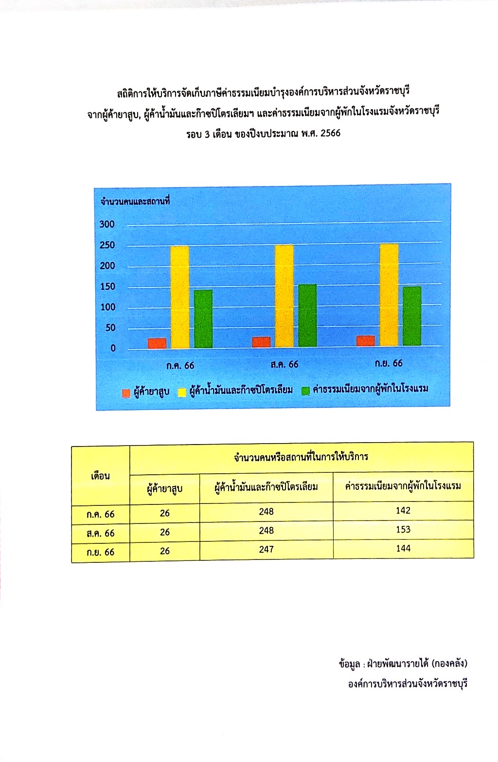 สถิติการให้บริการจัดเก็บภาษีค่าธรรมเนียมบำรุงองค์การบริหารส่วนจังหวัดราชบุรีจากผ ...