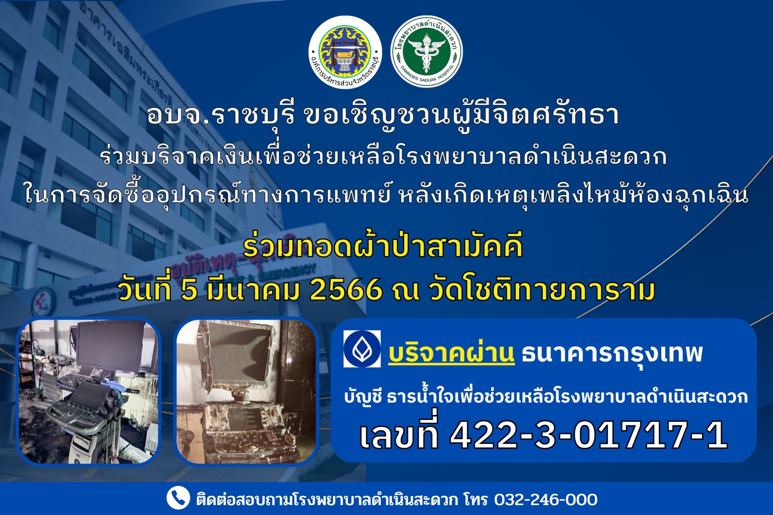 องค์การบริหารส่วนจังหวัดราชบุรี ขอเชิญชวนผู้มีจิตศรัทธา ร่วมบริจาคเงินเพื่อช่วย ...