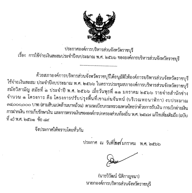 การใช้จ่ายเงินสะสมประจำปีงบประมาณ พ.ศ. 2566 ขององค์การบริหารส่วนจังหวัดราชบุรี ...