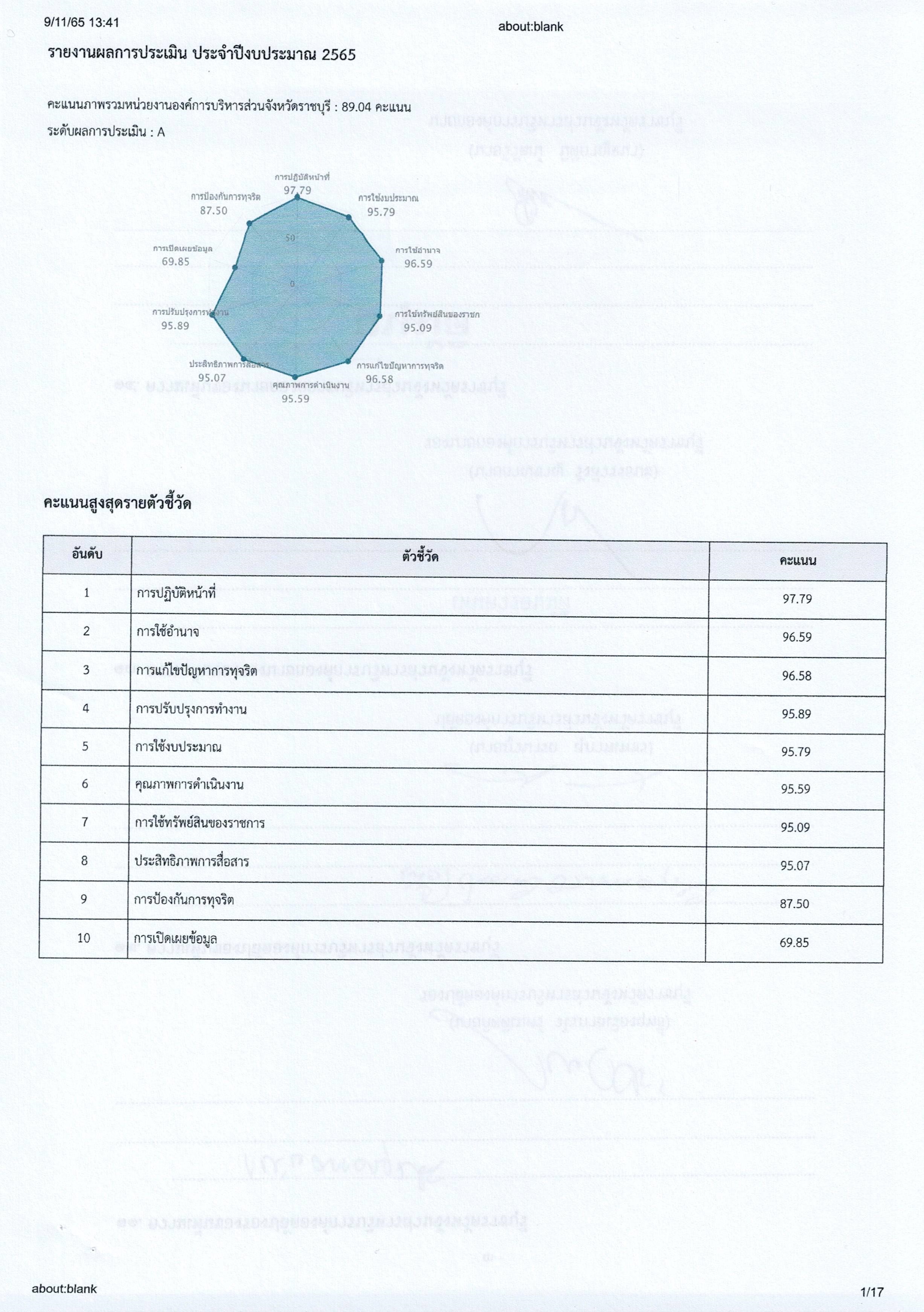 รายงานผลการประเมิน ITA ประจำปีงบประมาณ 2565 ...