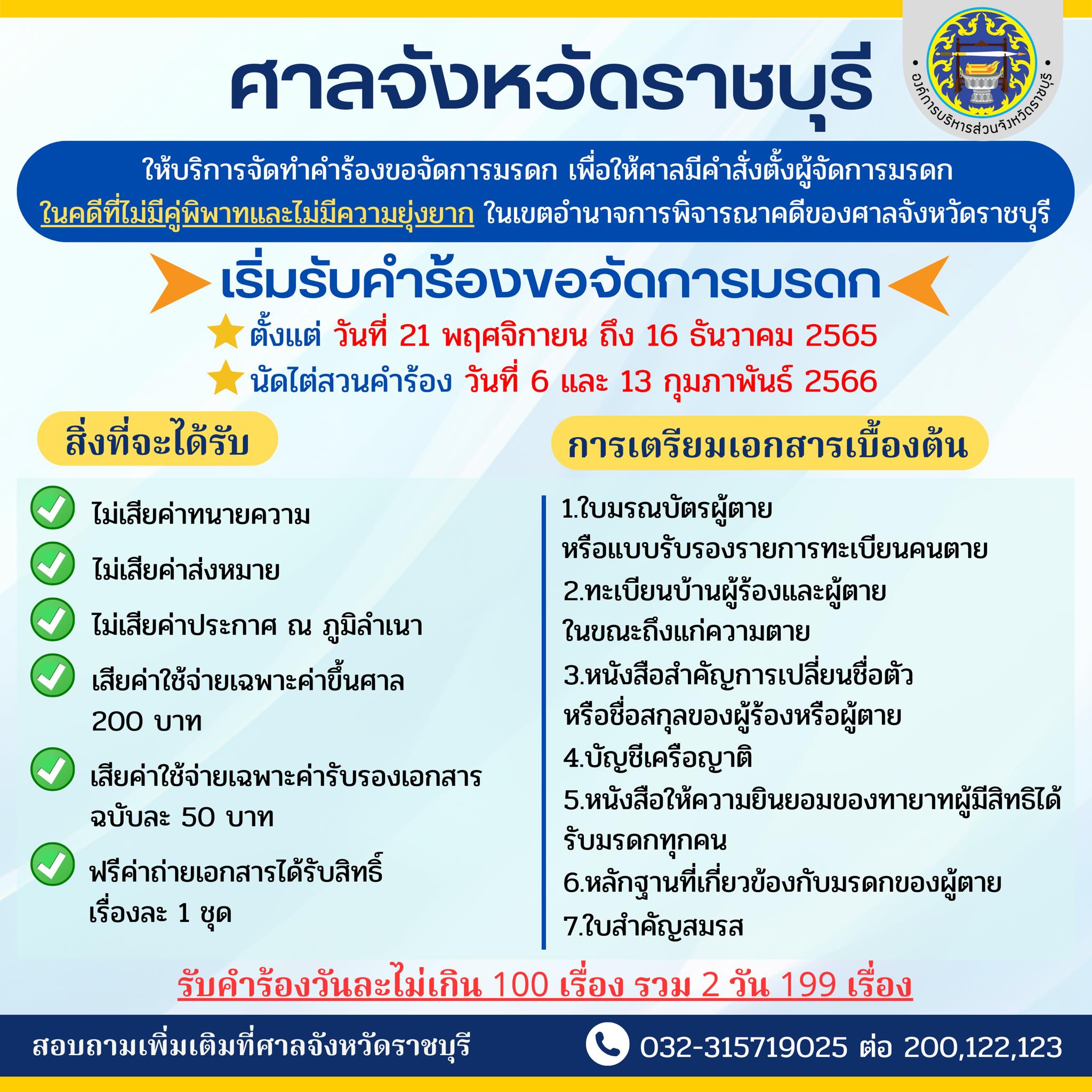 ศาลจังหวัดราชบุรี ให้บริการจัดทำคำร้องขอจัดการมรดก ...