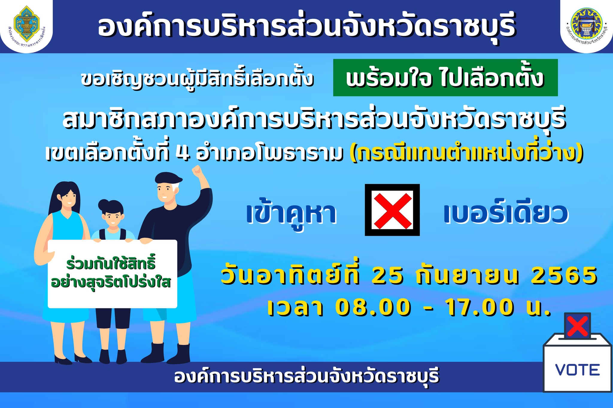 ขอเชิญชวนผู้มีสิทธิ์เลือกตั้ง พร้อมใจไปเลือกตั้ง สมาชิกสภาองค์การบริหารส่วนจังหว ...